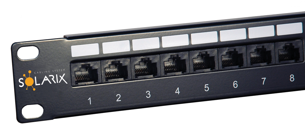 POPIS: Patch panel Solarix SX24L-6-UTP-BK je nestíněný panel kategorie 6 osazený 24 porty RJ45. Důležitou součástí těla tohoto panelu je vyvazovací lišta, která slouží k pevnému uchycení kabelů. Instalační kabel se na tomto panelu produktové řady Solarix - kategorie 6 zakončuje do duální IDC svorkovnice typu 110/Krone – tj. k zařezání lze použít nástroj typu 110 i Krone. Svorkovnice panelu je označena podle standardu T568A i T568B. Stejně jako všechny ostatní komponenty strukturované kabeláže Solarix je i tento panel vyroben tak, aby poskytoval velmi dobrou funkčnost a vysokou spolehlivost. Tento patch panel splňuje požadavky na komponenty kategorie 6/Class E definované ve standardech ANSI/TIA 568, EN 50173 a ISO 11801, včetně všech nejnovějších dodatků. Barva patch panelu je černá; velikost v datovém rozvaděči je 1U.