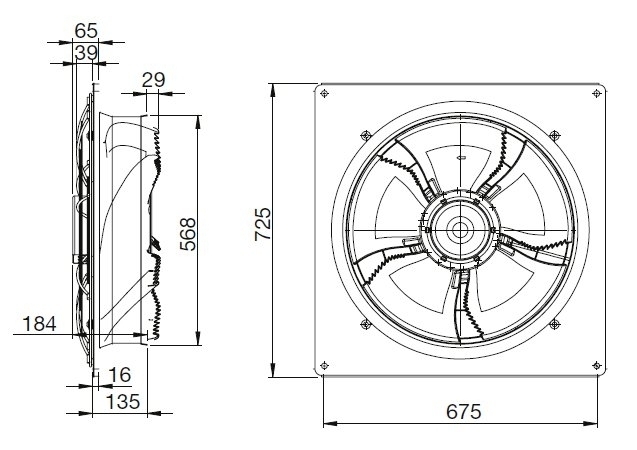 Elektronicky komutovaný motor s plynulým řízením otáček pomocí signálu 0…10 V s vestavěnou elektronikou (alternativně je možné řídit otáčky elektromotoru pomocí PWM signálu). Krytí motoru IP54, pracovní teplota v rozsahu -25 °C až +60 °C. Třída účinnosti motoru IE4. Motor je opatřen vestavěnou tepelnou ochranou. Kuličková ložiska jsou oboustranně uzavřená s tukovou náplní na dobu životnosti.