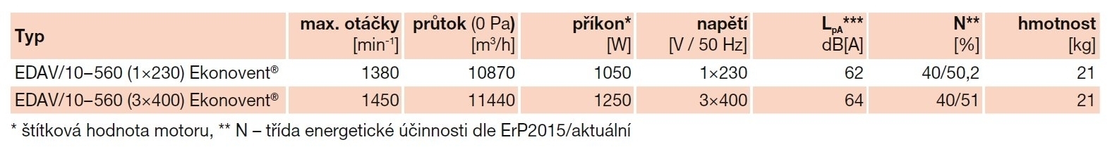 emitovaný ventilátorem je uveden v tabulkách, měření je prováděno ve vzdálenosti 3 m na výtlačné straně ventilátoru, bez reflexní složky, směrový činitel Q = 2, v bodě s max. účinností U = 10 V.