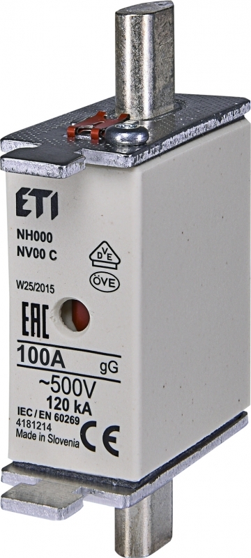 ETI NV00 100A 500V C gL-gG KOMBI, nožová pojistková vložka