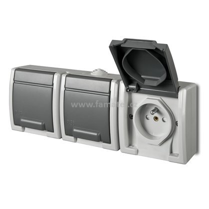 FAM 19084 ATLAS IP55 Zásuvka 3x 2P+PE, 3-násobná vodorovná s ochr. kolíkem, šedá