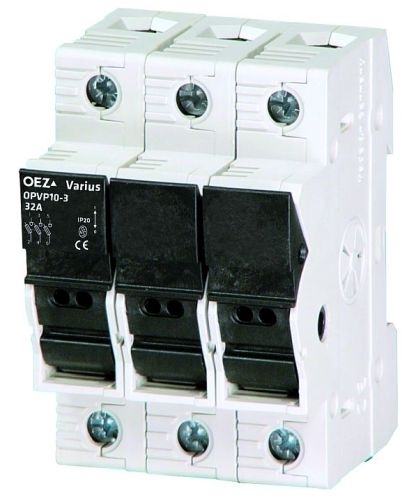 Popis produktu: Ie 32 A, Ue AC 690 V/DC 440 V, pro válcové pojistkové vložky 10x38, 3pól. provedení, bez signalizace