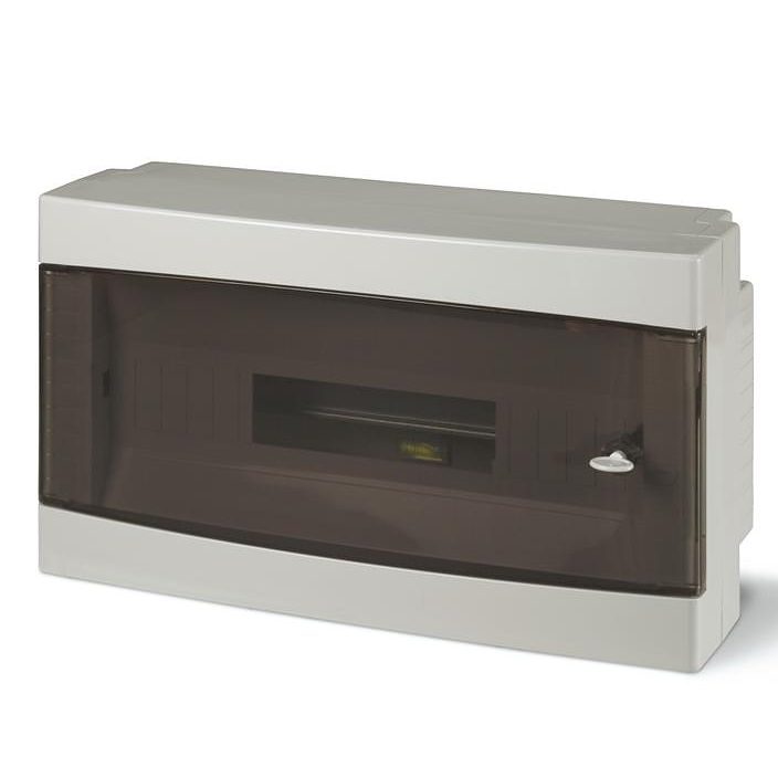 Přístrojová skříň s dvířky nástěnná DOMINO IP40, včetně svorkovnic N a PE - 18 modulů, transparentní dvířka