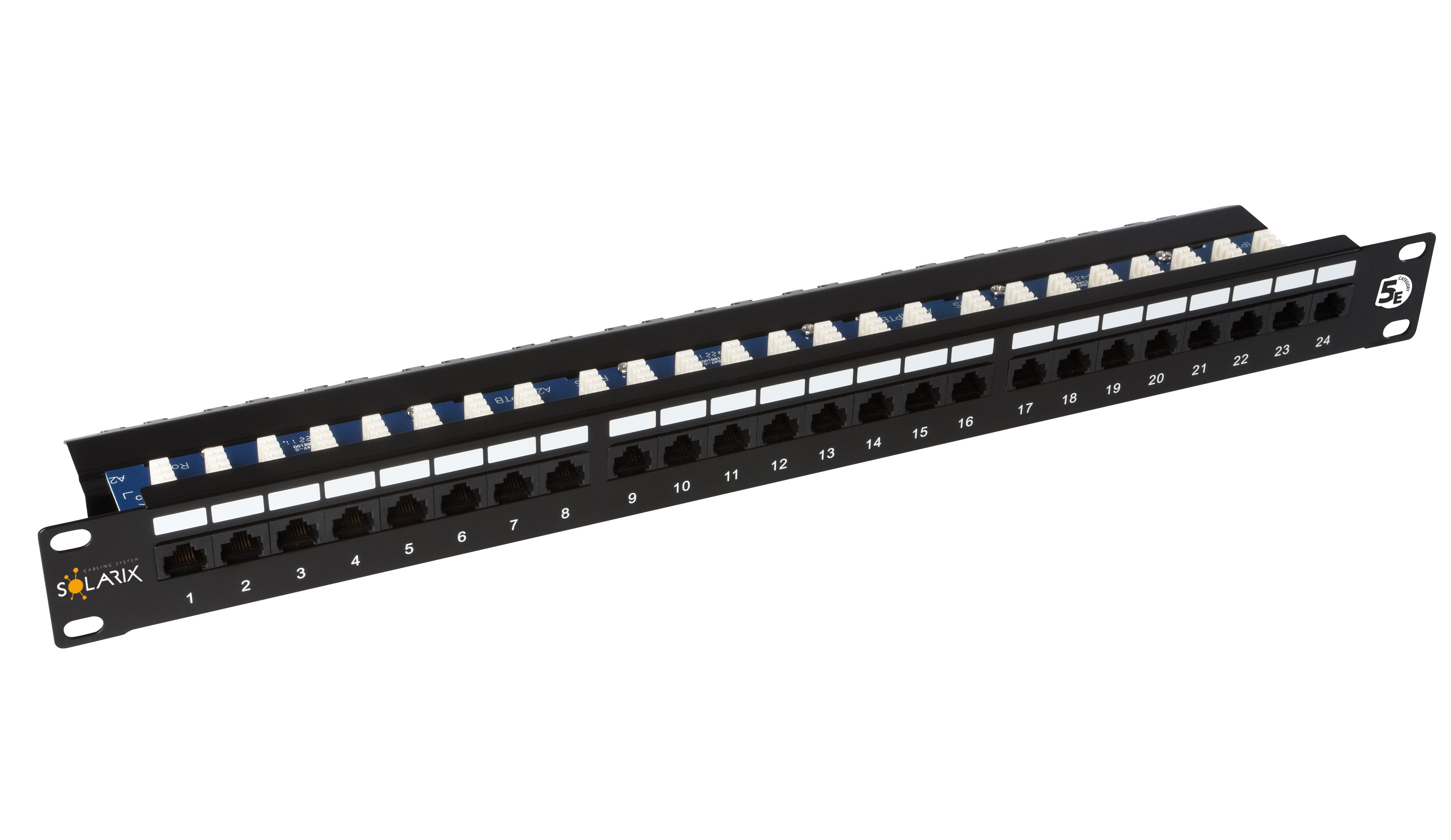 24000141 SX24L-5E-UTP-BK 19" Patch panel Solarix 24 x RJ45 CAT5E UTP s vyvaz. lištou černý