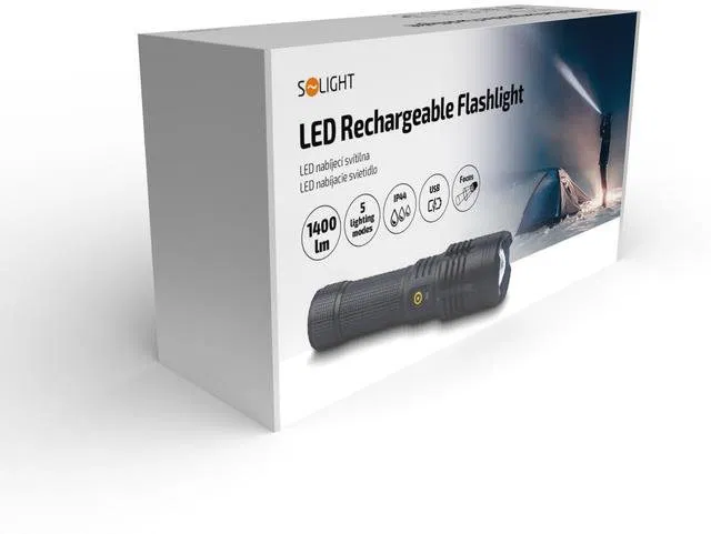 Solight LED nabíjecí svítilna, 1400lm, zoom, power bank, dárkové balení, Li-Ion